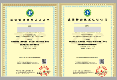 2、企业诚信的权威证明。企业信用指标符合国家标准,颁发国家级诚信管理体系认证证书,是企业诚信的权威证明;