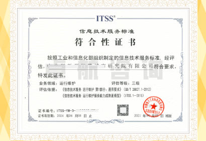 ITSS 信息技术服务运行维护标准符合性证书不仅是企业运维能力的权威认证,更是推动企业运维服务标准化、专业化的重要工具。通过认证,企业可在市场竞争中占据优势,同时实现内部管理的持续优化,为客户提供更可靠的 IT 运维保障。随着数字化转型的深入,ITSS 证书已成为 IT 服务行业的重要 “软实力” 象征。