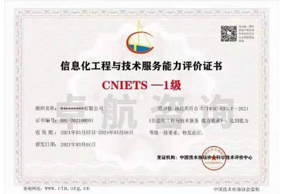 CN-IETS(全称“信息化工程与技术服务能力评定证书”)是由中国技术市场协会科学技术评价中心主导的认证体系,依据团体标准《信息化工程与技术服务能力要求》(T/TMAC 033.F-2021)开展评价。该认证旨在评估组织在整合硬件、软件、数据、网络等要素构建信息系统,并提供全生命周期技术支持服务的能力,覆盖基本能力、技术能力、服务能力、运营能力四大核心领域。其背景响应国家“十四五”规划对数字化转型的要求,推动企业信息化建设的标准化与高质量发展。